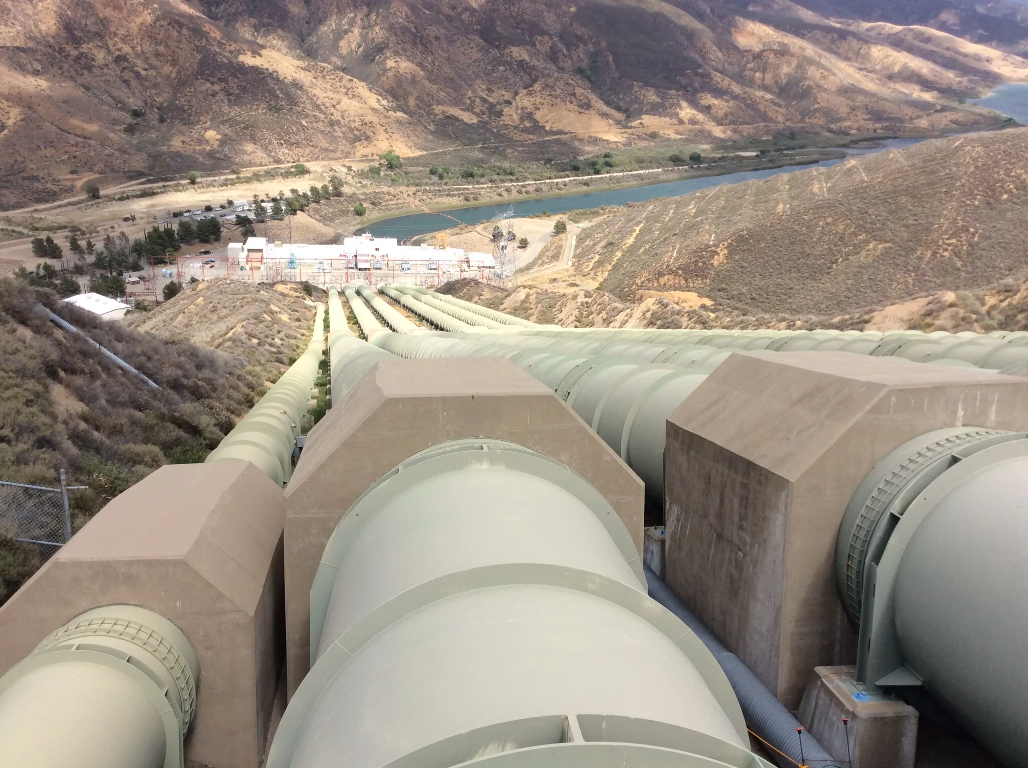 Sierra Commercial Plumbing, Inc. was selected by Alstom to design and build the cooling water system for the LADWP Castaic Hydro rehabilitation unit 7 located in Castaic, approximately 35 miles north of Los Angeles. Sierra employed over 30 workers, detailers, fitters and welders. Sierra also sub contracted pipe cleaning, pipe lining, sand blasting and radiographic testing. The generator is a hooped pelton runner patented by Alstom. The cooling system cools the generator and the three main shaft bearings. The system starts at 900 PSI and steps down for the cooling system. Sierra also installed specialty hydraulic systems designed by Alstom. One of the systems was the braking jets built in Canada and shipped to the site. Sierra rigged the system and installed it 40’ above grade in the turbine shaft. Sierra installed the hydraulic oiling system and compressed air piping for controls.